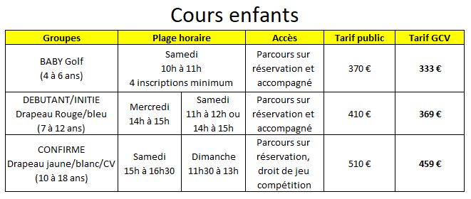 Les adhérents du GCV peuvent utiliser le parcours de 9 trous aux tarifs préférentiels suivants :