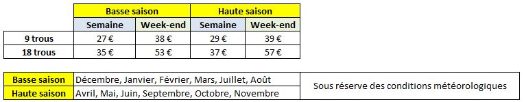 Les tarifs sont précisés dans le tableau ci-dessous :